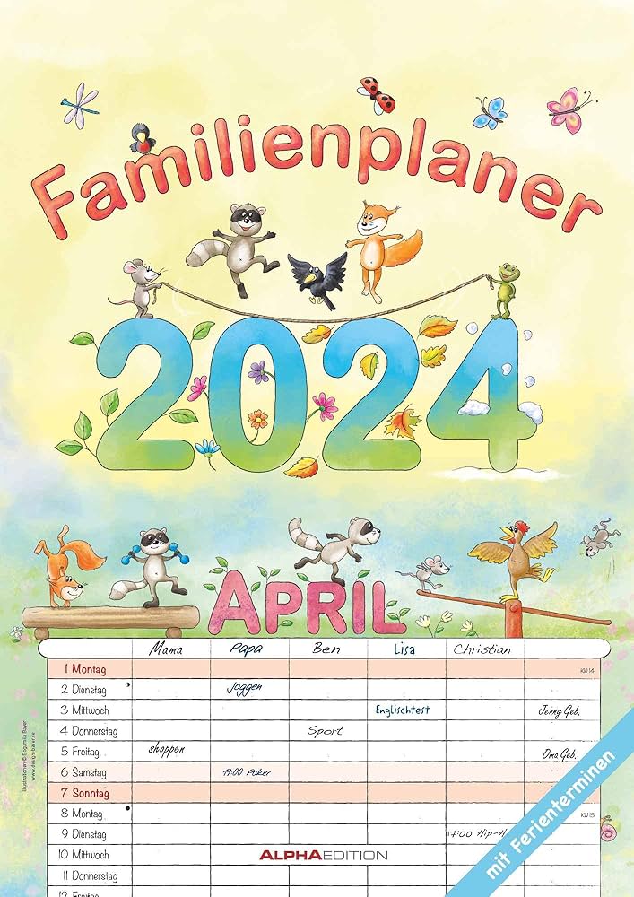Silke Leskien Cartoon Family Planner 2024 Family Calendar A3