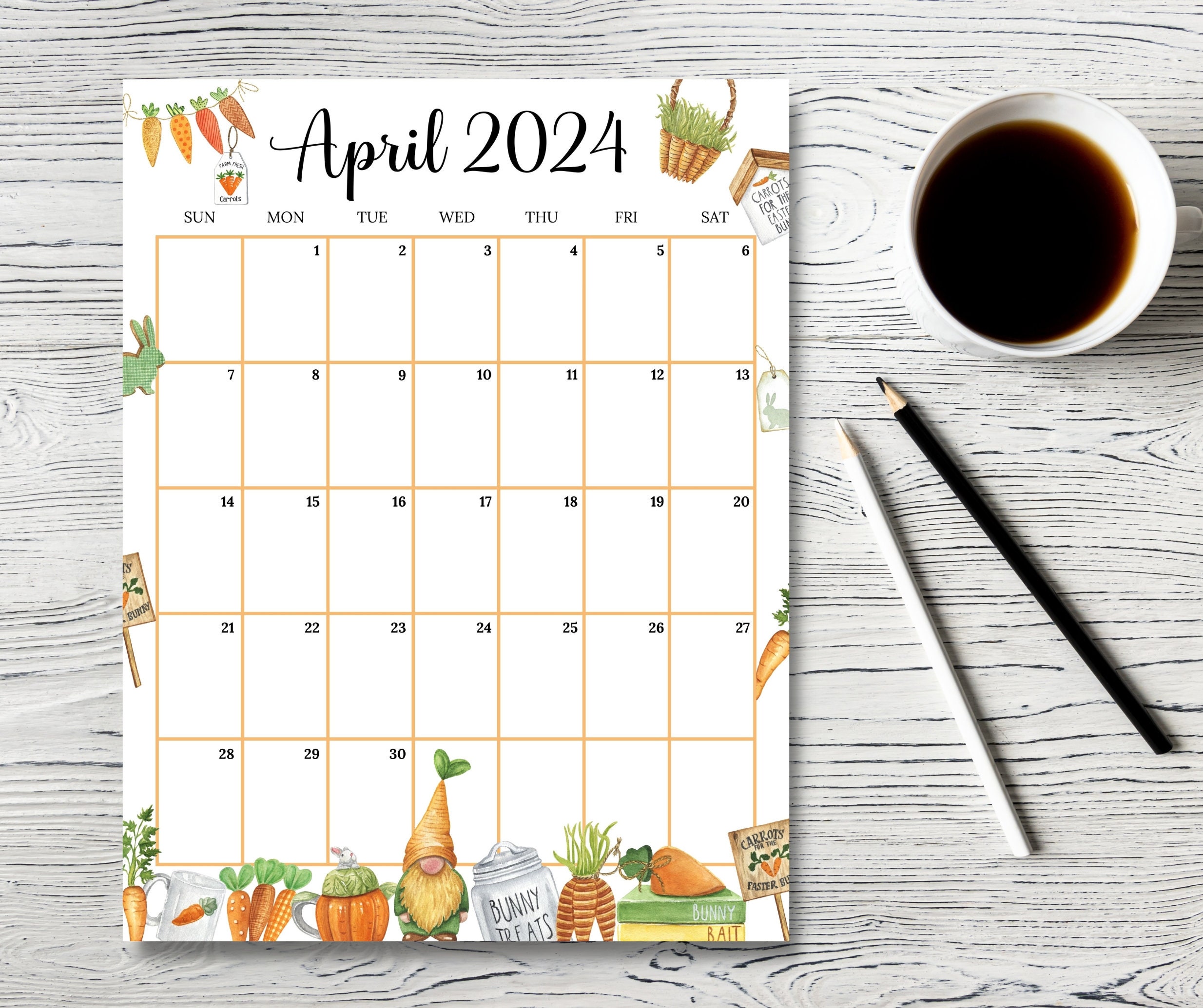 EDITABLE April 2024 Calendar vertical / Portrait Happy Etsy Canada