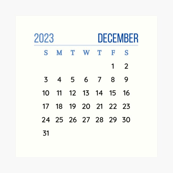 December 2023 Calendar” Sticker for Sale by Binsagar | Redbubble