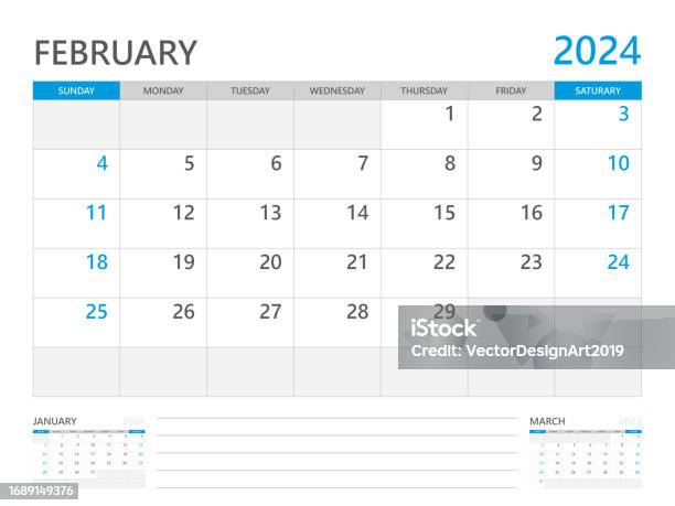 February 2024 Monthly Calendar Design In Clean Look Vector