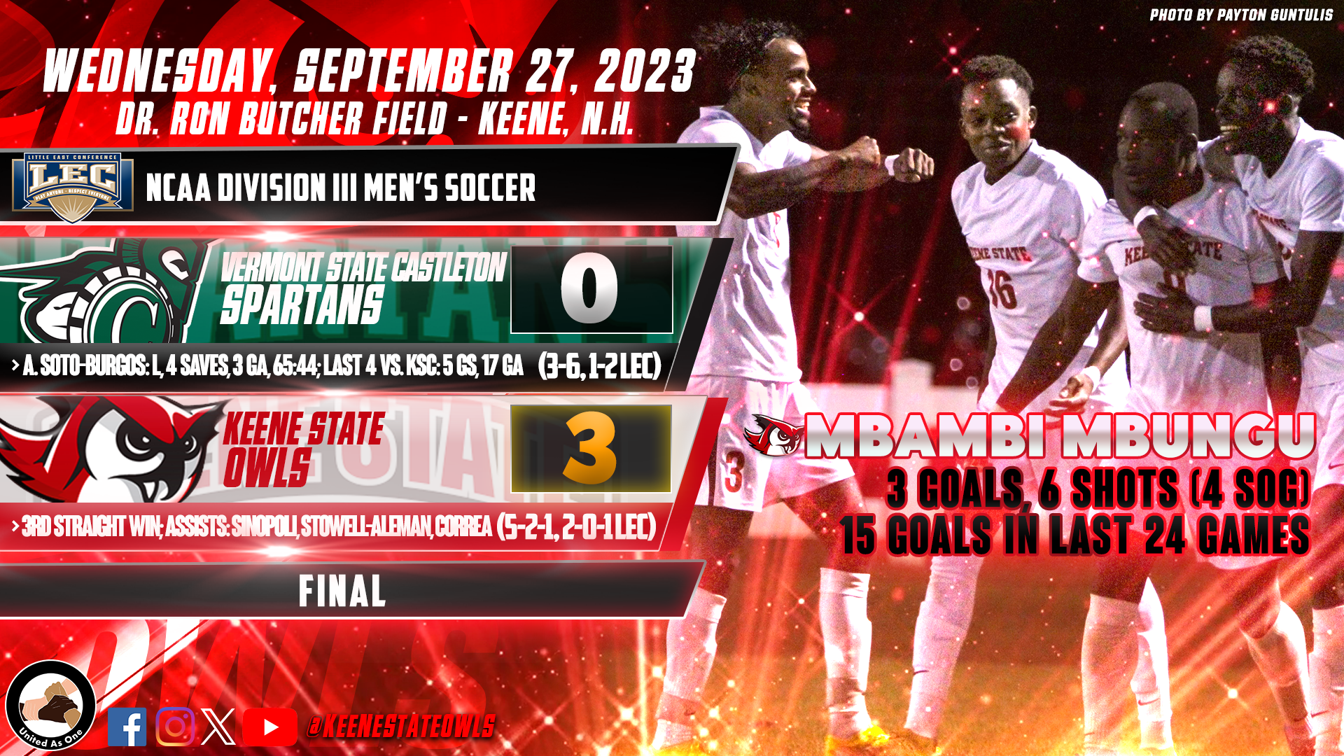Mbungu Sends Owls Flipping Past Spartans, 3 0 Keene State College